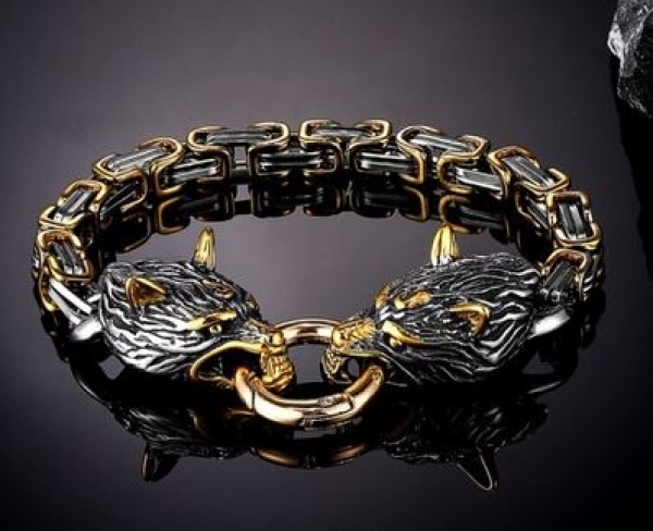 Armkette - Nordische Wölfe - silber/gold - 23cm
