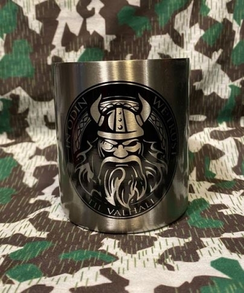 Edelstahltasse mit Karabinerhakengriff - In Odin we Trust